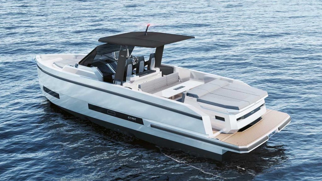 De Antonio Yachts španjolsko je brodogradilište čije su brodice u vrlo kratkom roku izrasle u popularan luksuzni yachting brend. Recept je bio napraviti brodice koje će izgledom odgovarati željama modernih vikend-nautičara uz dobre performanse i skladan dizajn. Nastali su kao odgovor na trendove i ističu da su njihove brodice proizvod zahtjeva suvremenog tržišta. Imaju maksimalni volumen interijera brodice, izvanbrodski pogon inovativno smješten u poluzatvoreno kućište. Brze su i pružaju ugodan boravak na moru. D32 je već komad jahtice sposobne za luksuznu vikend-plovidbu dva para, a za par u plovidbi pruža zaista mnogo komfora i u dužoj plovidbi.