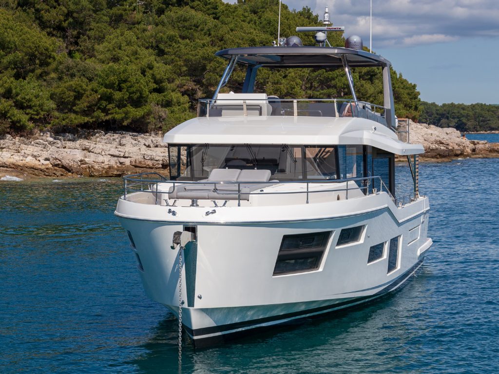 Grand Trawler 63 pravi je izbor za ljubitelje dugih i udobnih krstarenja, jer taj brod, kada plovi brzinom od 9 čvorova, ima autonomiju od oko 900 nautičkih milja.