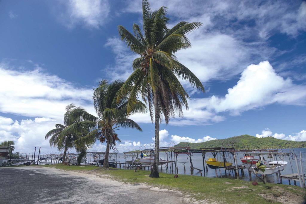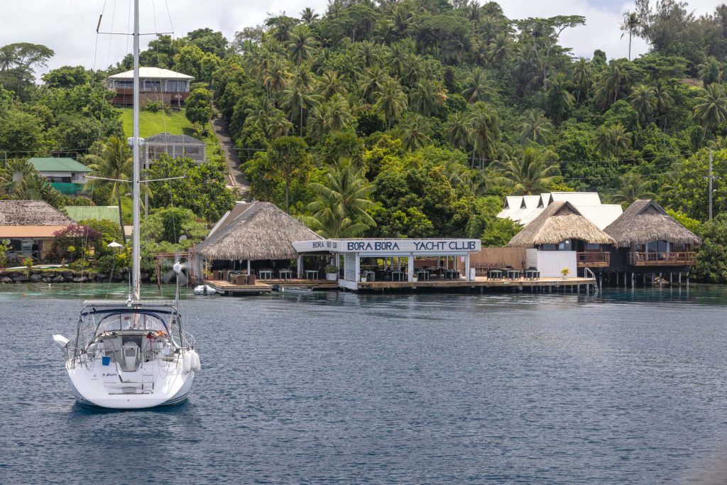 Vrijeme ujutro bilo je puno bolje iako je pljusak bio taman prije svitanja, ali oblaci su onda isparili s prvim jačim zrakama sunca i kako smo po laganom vjetru od 12 čvorova krenuli prema izlazu iz atola jasno smo vidjeli svoj cilj na horizontu. Osim Bora Bore i jednog malog atola Maupiti, horizont je bio nesmetano plavetnilo, lagano smo jedrili i polako se uzdizali i spuštali na visokim dugim oceanskim valovima, sretni što smo sa svakim valom sve bliže našem cilju. Bili smo uvjereni da je upravo odluka da unajmimo katamaran ispala najbolji način za istraživanje Bora Bore, jer kopna ima malo i dobar dio toga je privatan i pristup je zabranjen. Atol je također zaštićeno područje i sidrenje nije dozvoljeno na mnogim mjestima, odnosno gdje god ima koraljnih glava. Zapravo samo četiri mjesta prilagođena su sidrenju i na tim su mjestima postavljene bove. Svaki dan boravka unutar atola naplaćuje se 40 eura. Na otoku je malo selo Vaitape gdje se može pristati bočno na operativnu obalu, ali ne može se dugo stajati. Veliki je broj turističkih i lokalnih plovila svih veličina koja dovoze i odvoze turiste, što s velikih kruzera što iz hotela i resorta. Na kraju krajeva, na obali se nema baš ni što raditi, restorana skoro pa da i nema u selu, većinom su uz more i lakše je do njih doći pomoćnim čamcem odmah s broda. Međutim, ima dobrih dućana za nabavu i opskrbljivanje, jedan je tipični lanac francuskih dućana mješovitom robom, dok je drugi u vlasništvu Kineza, koji su inače rasprostranjeni po Polineziji i glase kao pouzdani poslovni ljudi. Nekoliko mještana nam je skrenulo pažnju da su Kinezi najbogatiji. U selu uz cestu je nekoliko štandova s tropskim voćem koje stvarno nije skupo, dok su u samoposlugama europske cijene. Postoji i pošta, kao i dvije benzinske pumpe i još nekoliko butika i suvenirnica.