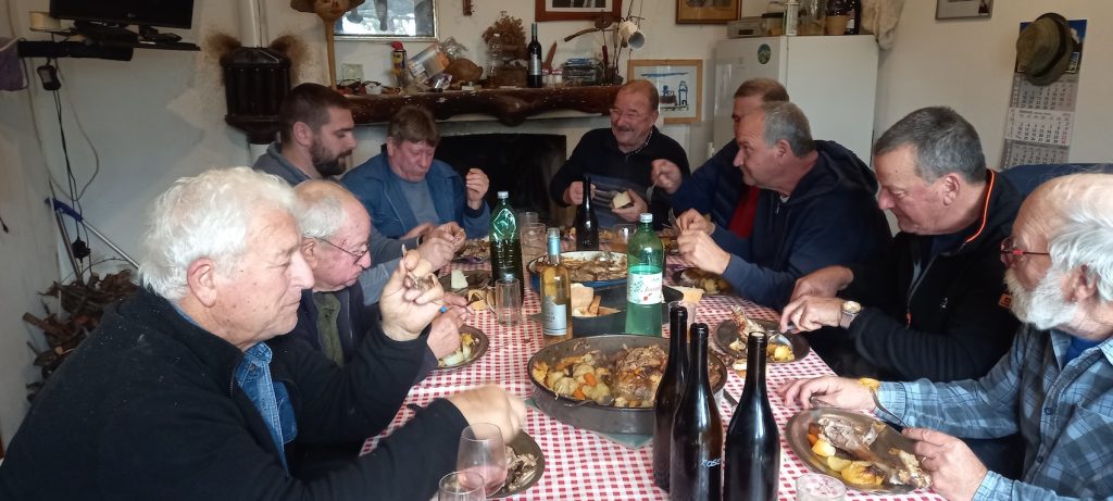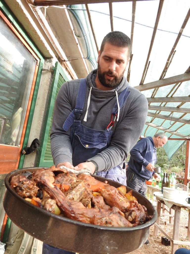 Tako je bilo i ovoga puta. Okupilo se birano društvo u kojem svakog pojedinca uz kolektiv veže prijateljstvo i zajednički opstanak s uzusima prirode. A povod je bilo tek devedeseti rođendan, jednog od njih, barba Zorka Carića. I dok je najstariji vodio pjesmu i krijepio se s ostatkom družine dotle se najmlađi Boris Kovačević prihvatio peke. Vatra je već plamtjela gotovo cijeli sat, žeravice je bilo na pretek. Boris je posložio u plitku okruglu posudu birane komade kozlićeva mesa. Za Dalmatince, napose otočane, ovo je kultno meso koje se blagovalo samo u posebnim prigodama i iznosilo pred uvažene goste. I još nešto, nikada se ono nije „tituliralo“ s mlada kozletina, iako to u stvari i je, nego kao meso od kozlića.