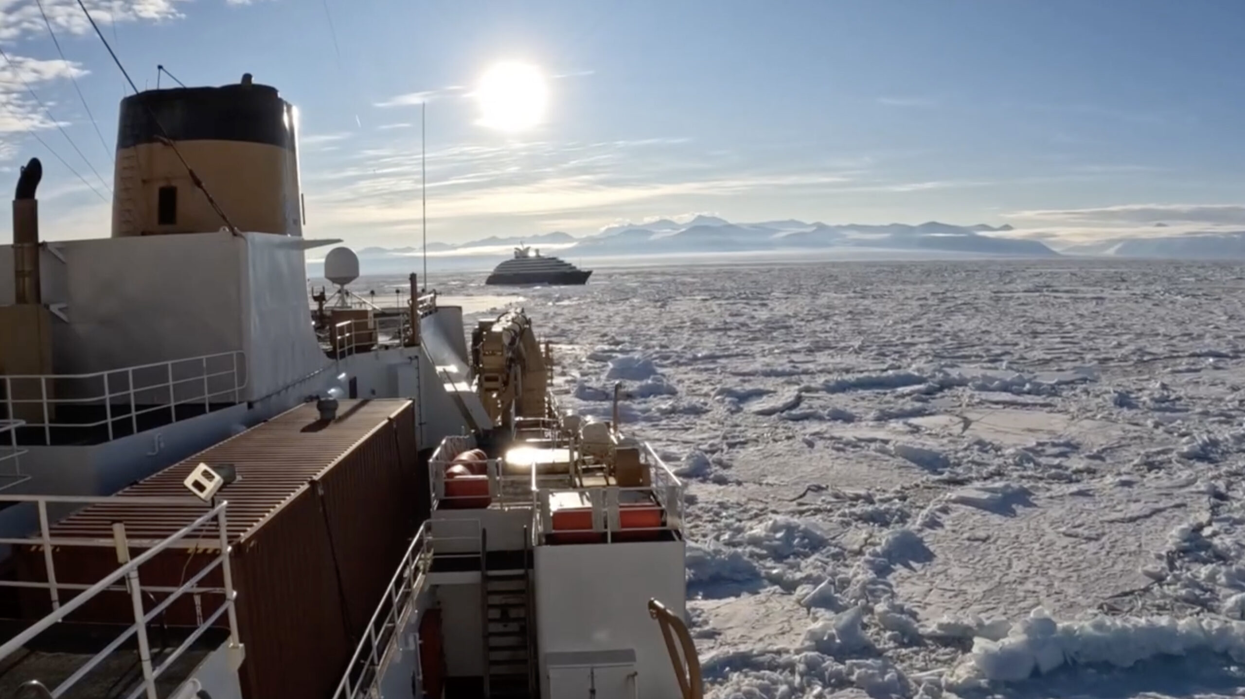 Objavljene snimke prikazuju Polar Star kako se polako probija kroz ledenu barijeru. Motori rade punom snagom kako bi razbijali led, a pramac otvarao prolaz. Manevar nije trenutačan i zahtijeva višestruke prolaze kako bi se stvorio dovoljno širok vodeni koridor kojim bi se nepokretni brod mogao kretati. Na snimci spašavanja vidi se kako Scenic Eclipse II lagano oscilira. Pokušavajući iskoristiti i najmanji otvor među ledenim pločama, dok se oko njega proteže krajolik neprekinutih bijelih prostranstava.
