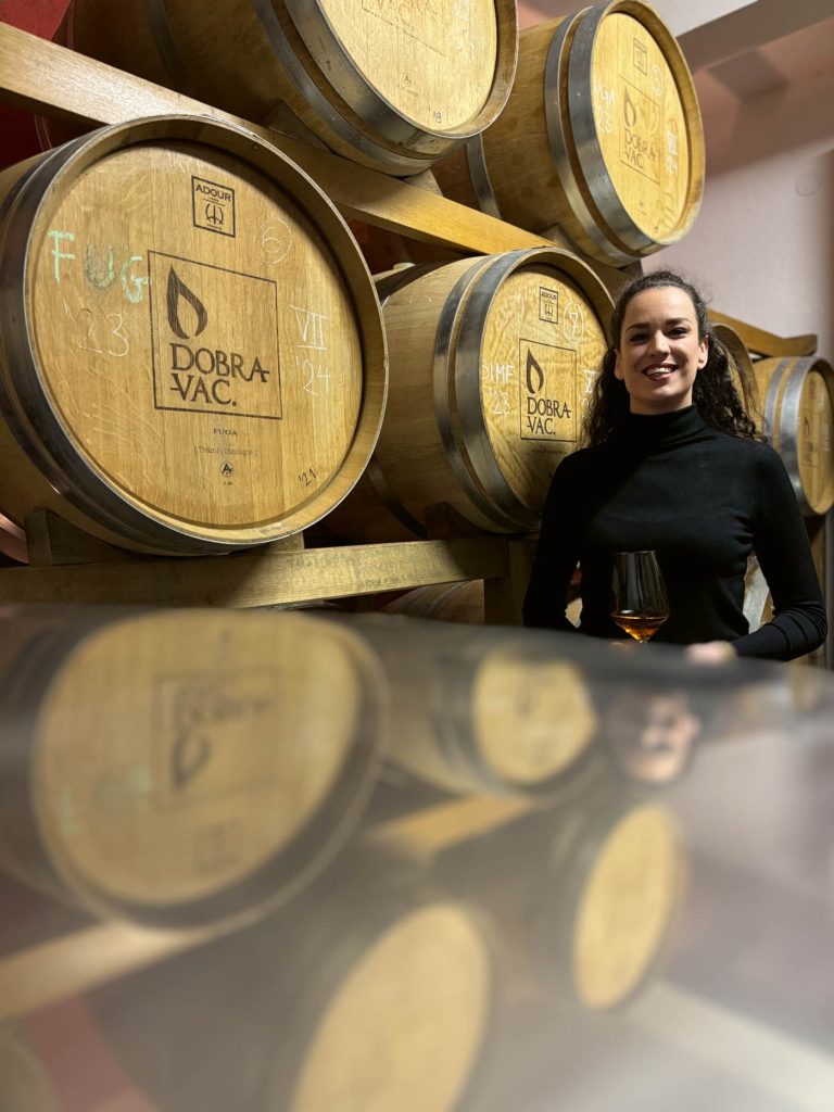 Ne bih smio reći da vjerujem kako ova vina nastaju iz topline i ljubavi kojom zrači mlada vinarka vinarije Dobravac, Matea Jagar. Ali ja vjerujem da bi iz istog onog grožđa koje dođe u Mateine ruke, nastala neka sasvim drugačija vina u nekim drugim rukama. Priča mi kako ne spava dok je vino u podrumu, i kako opet ne bi mogla bez toga. Kako se opušta uz kušanja, kako voli sve u vezi vina ali najsretnija je u barikaji… Kako se najlakše izrazi baš kroz malvaziju, kako voli moćne i kompleksne stilove vina i kako ju fasciniraju macerati. Dugo njegovanje, duga maceracija, dozrijevanje, oblikovanje kroz vrijeme.