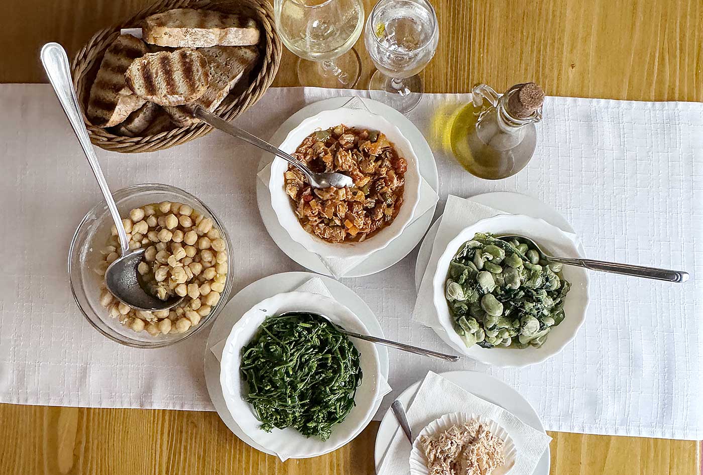 Sve se vraća u otočki, sredozemni, ritam izmjene sezonske hrane. Na stolu će gotovo svakodnevno biti bob, blitva i artičoki. Povremeno će se ovaj ubitačni ritam presijecati mladom janjetinom s bižima. Kao žal za zaboravljenim jelovnicima osvježit će se sjećanje s divljim zejem prije nego što suša, sunce i vrućine sve spale. I šparoge su gotovo svakodnevna lagana večera, sad poželjno s tvrdo kuhanim jajima ili u fritaji (omletu). Postupnu transformaciju jelovnika donijet će sve više ribe, a prednjačit će sardele. Uz omega-3 masne kiseline poticaj radosti življenja doprinosit će lagani zalogaj, lešo kuhane tikvice ili fažoleti (mahune). Iz dana u dan jelovnik će pratiti izmjenu godišnjih doba uvijek s uzdahom sjećanja i punim ustima hvale za onim napuštenim pa bio on i pasijunski. Dapače!