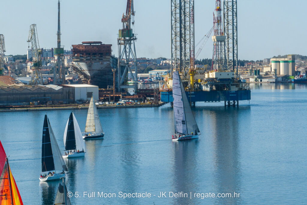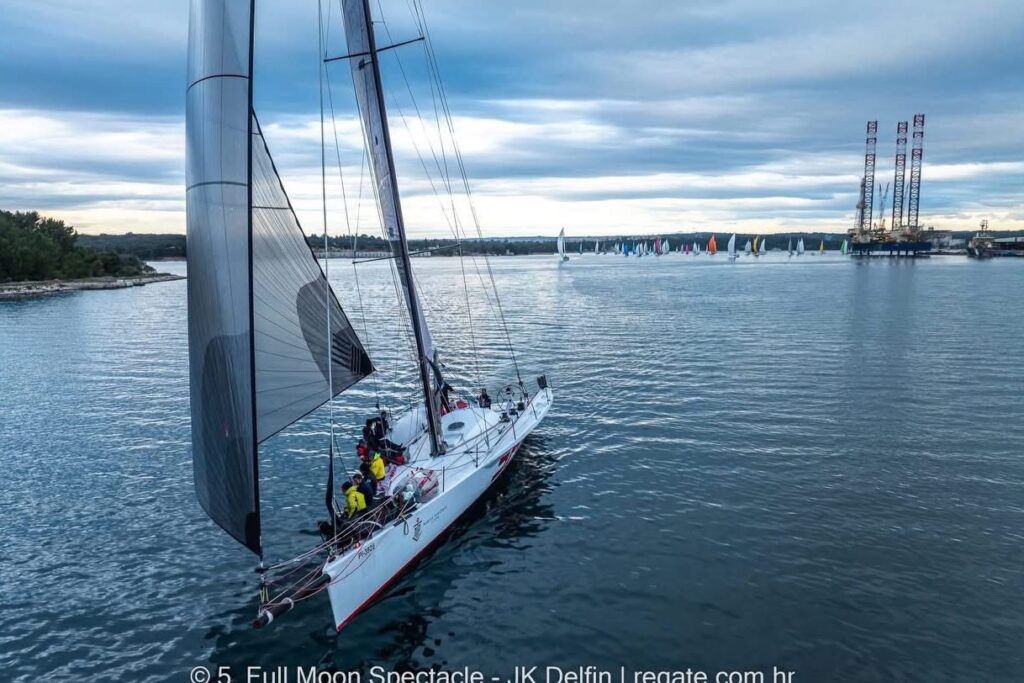 Ovogodišnji Full Moon obilježila je bezvjetrica. Na startu navigacijske regate u subotu u pulskoj je luci bilo manje od čvora vjetra. U tim okolnostima nekoliko se jedrilica izmijenilo u vodstvu.