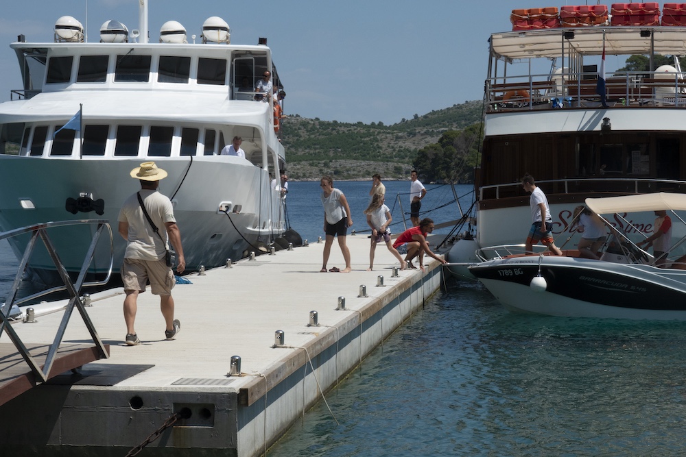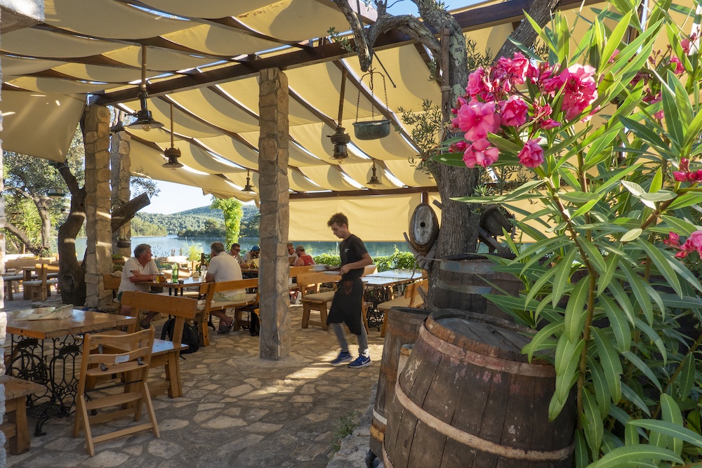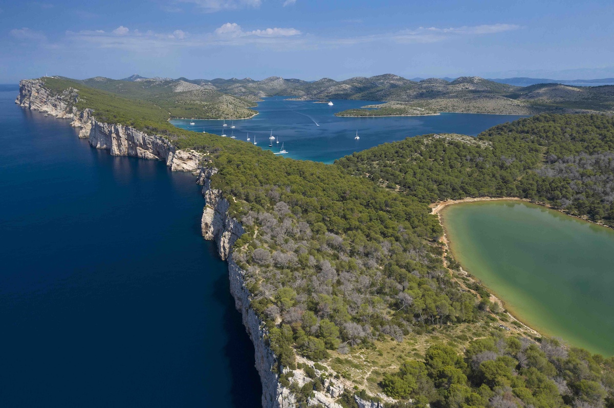 Najviše je brodova u Telašćici u uvalama Mir i Tripuljak. Tu su sve do rta Tripuljak usidrene bove na dubini od desetak metara. Uvala je dobro zaštićena od svih vjetrova. Kad ste na bovi, učinite ono što rade svi – ukrcajte se u bajbot pa pravac pristan pred konobom Tilago uvali Mir. Tamo po danu sve vrvi od turističkih barki. Odatle krenite u šetnju do slanog jezera Mir, dugootočke atrakcije i motiva na monografskim fotografijama! Lijepo je kroz borovu šumu otpješačiti i na drugu stranu otoka do čuvenih klifova. Oni se okomito više od 100 metara spuštaju u more, na tom mjestu dublje i od 80 metara.
