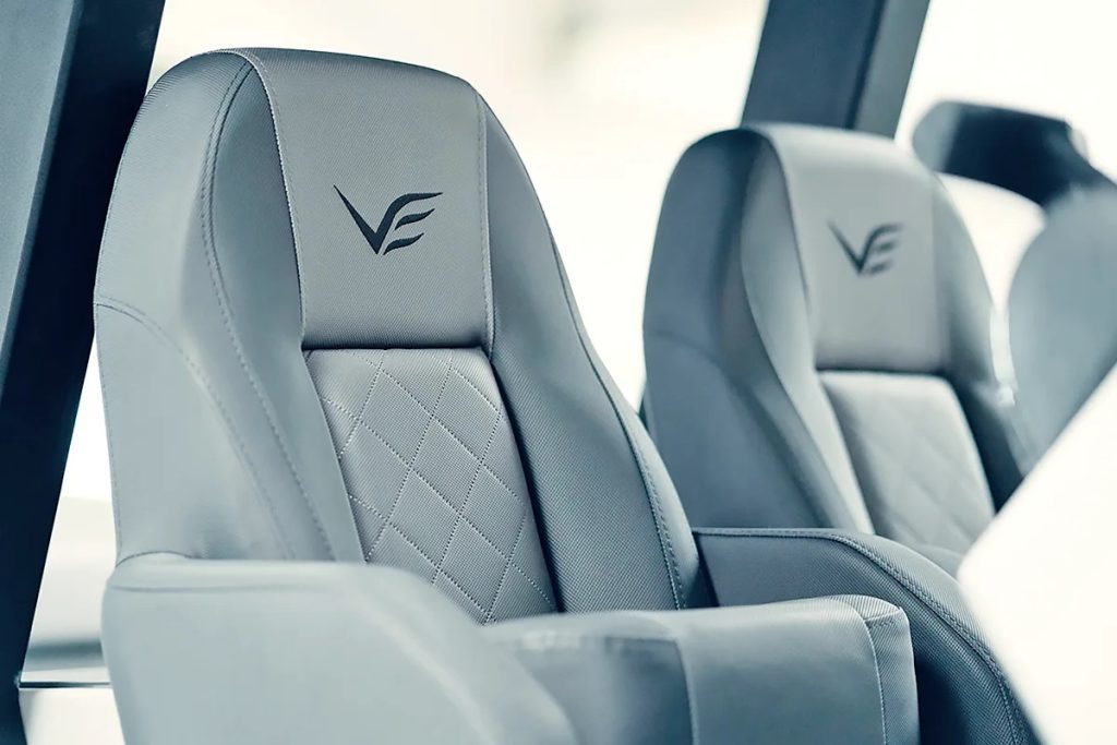 Projektiran je podjednako za plovidbu morem, rijekama i kanalima. Krmena platforma olakšava pristup moru, a paluba nudi prostorne društvene zone s pomičnim stolom i klupama, hladnjak i šest držača za čaše. Na V750 može se ukrcati do osam osoba. Kokpit s centralnom konzolom i hidrauličkim upravljanjem omogućuje pregledno i precizno upravljanje. Pod centralnom kabinom može se nalaziti toaletni prostor s wc-om i umivaonikom ili veliki skladište sve moguće opreme potrebne u plovidbi i na izletu. Paluba kombinira sunčana i zasjenjena područja, a spremišta za opremu i osobne stvari ima dovoljno. Spremnik goriva iznosi 260 litara, a spremnik vode 60 litara.