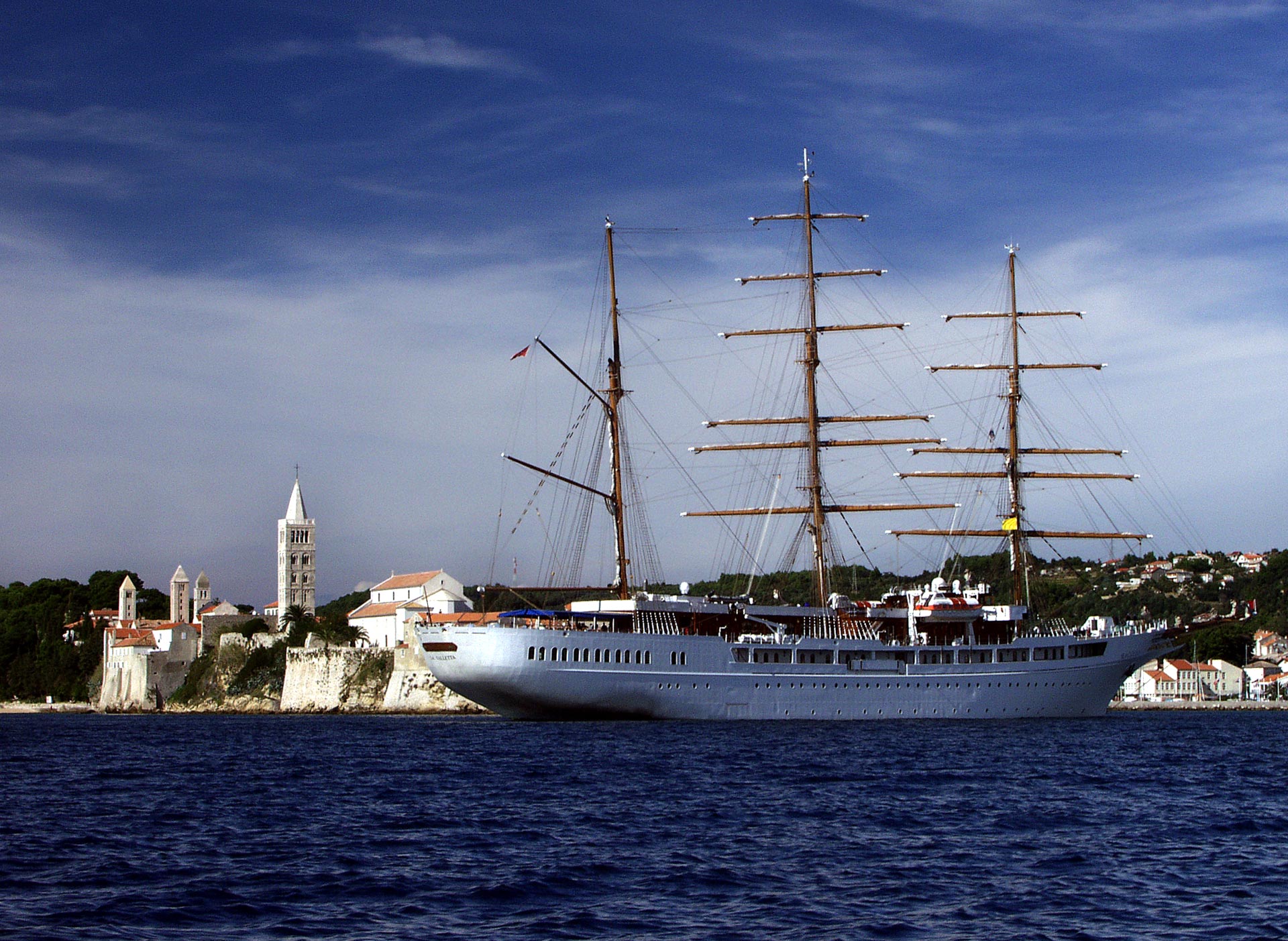 The 700-metre long Rab waterfront, on the peninsula where the old town with its four towers is located, is one of the most scenic panoramas on the Adriatic. Add to that the fact that it extends for almost the same distance to the very end of Rab Harbour, and then along the opposite side of the harbour and the breakwater which protects it and it becomes clear that this is one of the largest waterfronts on the Adriatic islands. There is also an ACI marina within the harbour as well as five jetties for local boats, which take up most of the NE shore. However, there is not much space on the waterfront for ordinary sailors on motor boats or sailboats between 9 and 15 m in length. Namely, the southeastern end of the waterfront below the peninsula is reserved for passenger traffic, then come berths for various tourist and excursion ships, and right at the end are some berths for sailors. Most usually moor side on, which explains why there is only enough space for about ten boats. Sailors who do not want to go to the marina often moor side by side, use empty berths between excursion boats or the part of the waterfront reserved for passenger traffic, if the port authority officials allow it. On the other hand, the harbour is perfect for sailors with smaller boats, of whom there are many. Lošinj. The buoys off the NW shore of the harbour, where around 70 boats can moor, are intended for them too. The harbour is deep enough, except for its NE part, with depths of between 3 and 7.2 m. Although at first glance the harbour seems well sheltered, the bura is felt quite strongly and the jugo creates sea swell. Once you are moored on the waterfront you will find yourself at the very entrance to the old town. It is quite an experience walking along its three streets, Donja, Srednja and Gornja (Lower, Middle and Upper Street), visiting its fascinating churches and climbing its bell towers. There are several excellent restaurants in Rab and many interesting events take place there during the summer. The most famous is the three-day long Rab Fiera, which takes place at the end of July, evoking medieval Rab.